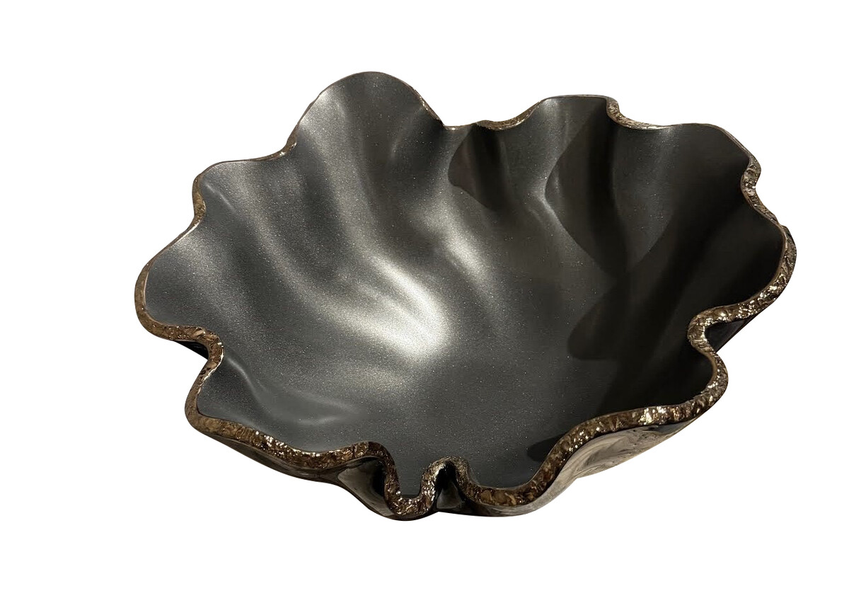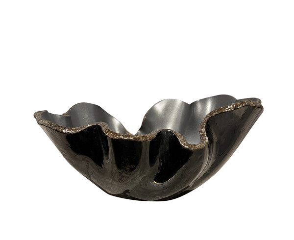 Home Bowls Contemporary Brazilian Free Form Silver Color Glass Bowl Contemporary Brazilian Free Form Silver Color Glass Bowl Contemporary Brazilian free form shaped glass bowl Metallic silver interior with decorative chiseld rough edges gold in color One of several Brazilian designed glass objects Style Number: S6205 Condition: Excellent Origin: Brazil Date: 21st Century Height: 7" Width: 16" Depth: 14.5" List: $2450 Inquire About This Piece View PDF Tear Sheet