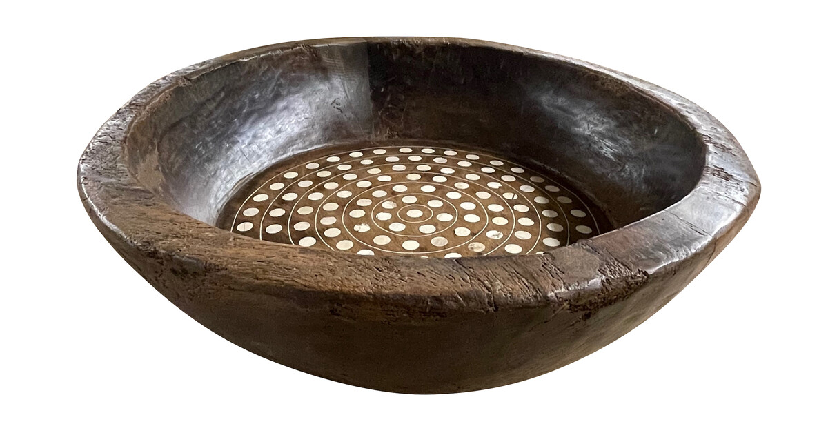 Home Bowls Contemporary Indian Round Wood Bowl with Bone Inlay Contemporary Indian Round Wood Bowl with Bone Inlay Contemporary Indian round wood bowl with round bone inlay Style Number: S6744 Condition: Excellent Origin: India Date: 21st Century Height: 5.5" Diameter: 20.5" List: $1500 Inquire About This Piece View PDF Tear Sheet