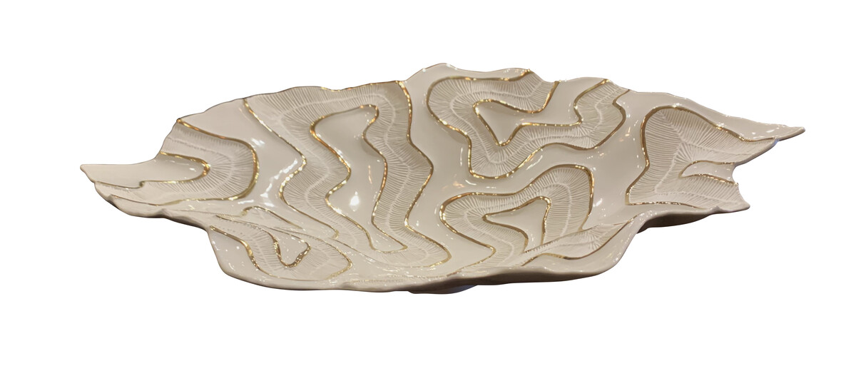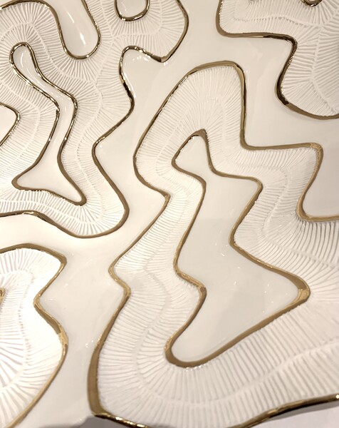 Home Bowls Contemporary Italian Porcelain with 22K Gold Trim Bowl Contemporary Italian Porcelain with 22K Gold Trim Bowl Contemporary Italian white porcelain bowl with decorative coral motif details Organic free form shape 22K gold accents Style Number: S5788 Condition: Excellent Origin: Italy Date: 21st Century Height: 7" Width: 25.5" Depth: 18" List: $2950 Inquire About This Piece View PDF Tear Sheet