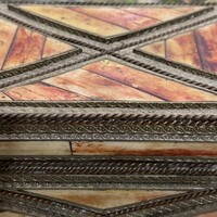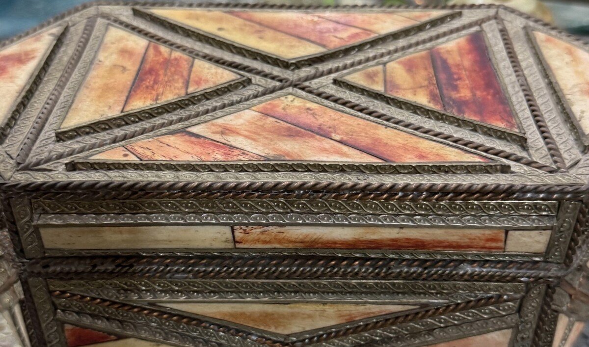 Home Boxes 19thc Morocco Henna Dyed Bone Box 19thc Morocco Henna Dyed Bone Box 19thc Morocco box with dyed bone pieces Detailed silver strips border bone pieces Often a wedding gift ARRIVING TBD Style Number: S7122 Condition: Excellent for age Origin: Morocco Date: 19thc List: $1225 Inquire About This Piece View PDF Tear Sheet