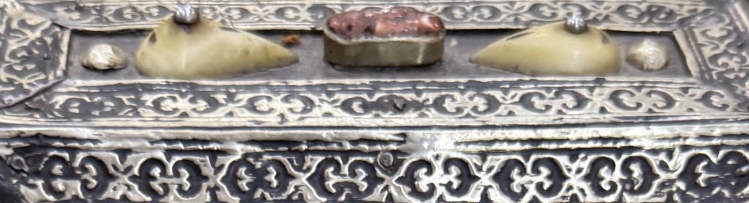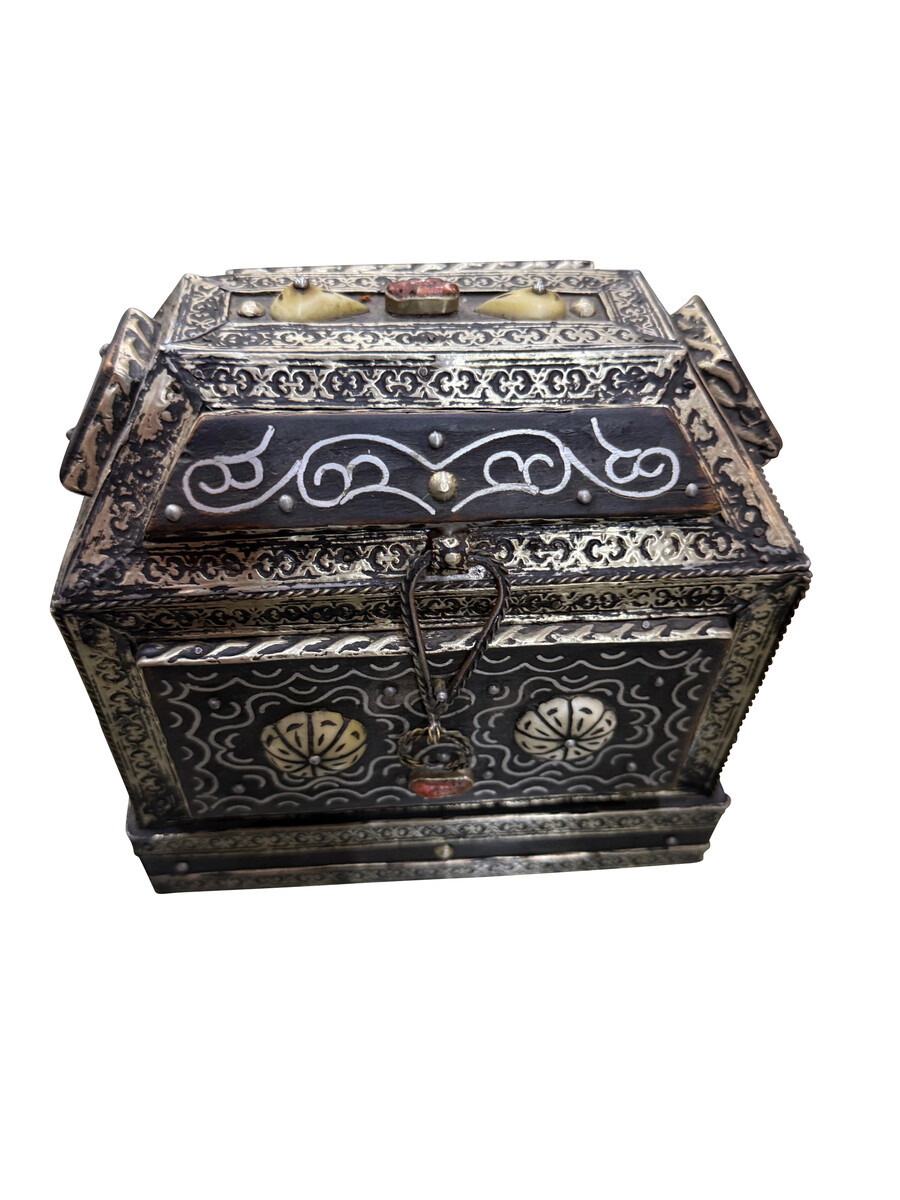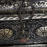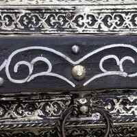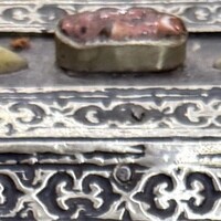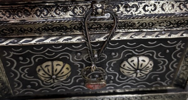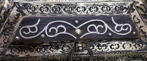 Home Boxes 19thc Morocco Silver Inlay Small Chest 19thc Morocco Silver Inlay Small Chest 19thc Morocco silver inlay small chest Bone and jewel decorative top Detailed silver latch Often a wedding gift From the Atlas mountain region ARRIVING TBD Style Number: S7120 Condition: Excellent for age Origin: Morocco Date: 19thc List: $1225 Inquire About This Piece View PDF Tear Sheet
