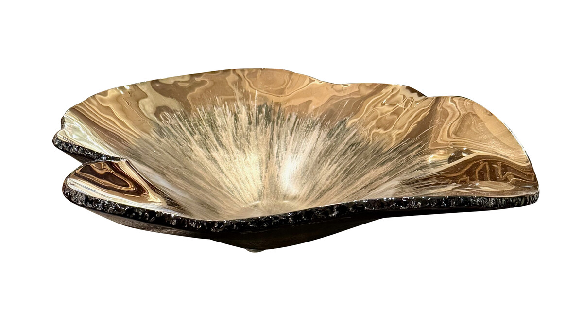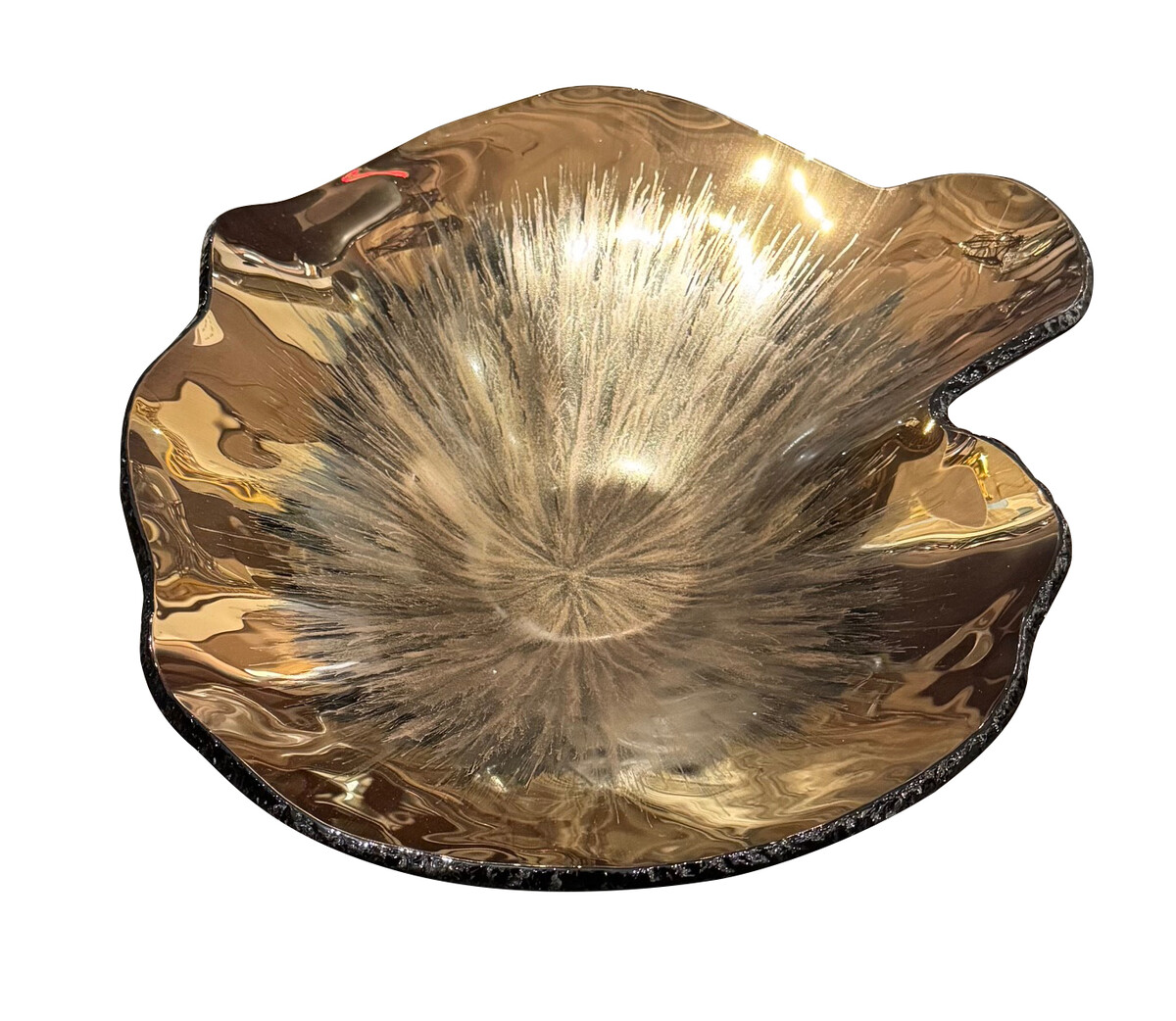 Home Trays / Platters Contemporary Brazilian Free Form Shaped Glass Bowl Contemporary Brazilian Free Form Shaped Glass Bowl Contemporary Brazilian free form shaped glass bowl Decorative gold "splattered" finish Style Number: S6997 Condition: Excellent Origin: Brazil Date: 21st Century Height: 5" Width: 22" Depth: 19" List: $2450 Inquire About This Piece View PDF Tear Sheet