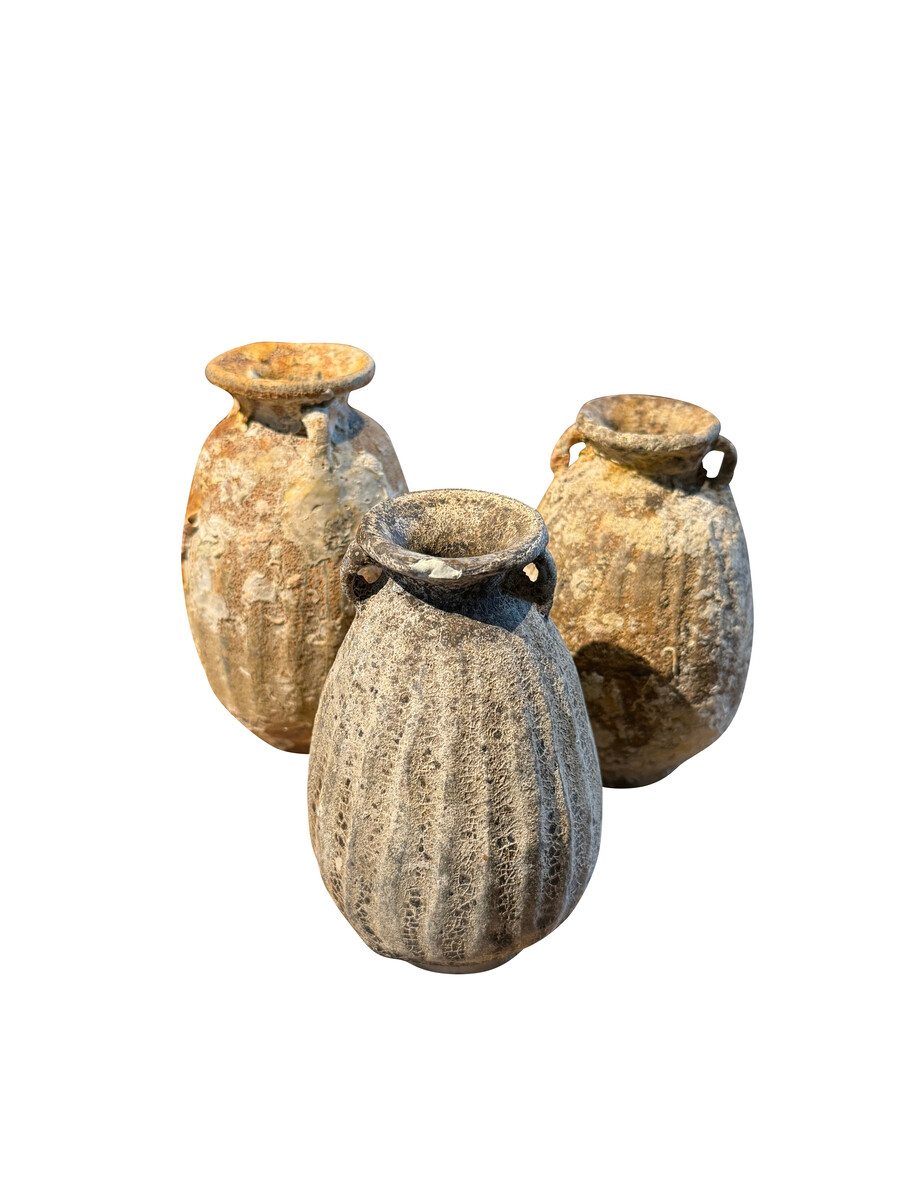 Home Vases 16thc Thailand Sawankhalok Ship Wreck Parfum Bottle 16thc Thailand Sawankhalok Ship Wreck Parfum Bottle 16thc Thailand Sawankhalok ship wreck parfum bottle Two handles Vertical rib detail Beautiful natural patina with barnacles Three available ARRIVING TBD Style Number: S7074 Condition: Excellent for age Origin: Thailand Date: 16thc Height: 6" Diameter: 3.5" List: $1500 Inquire About This Piece View PDF Tear Sheet