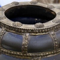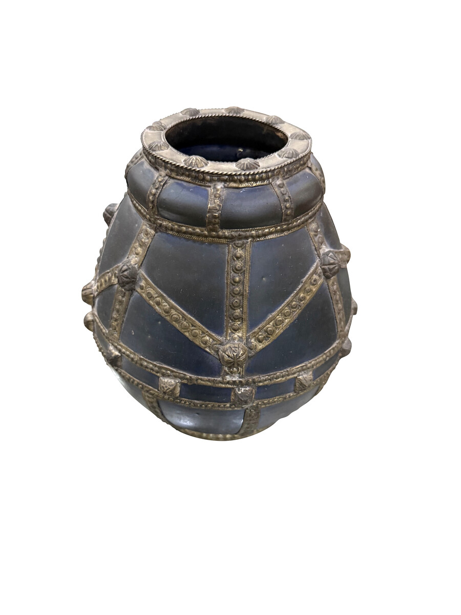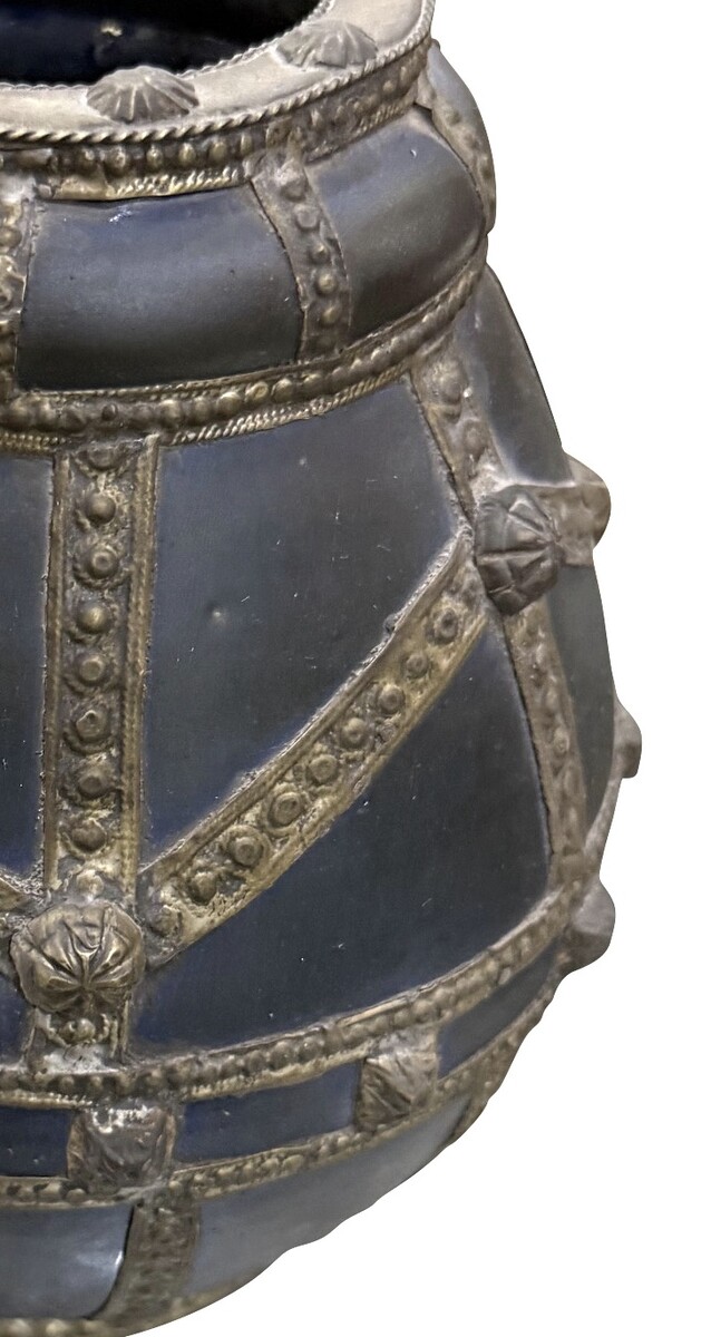 Home Vases 19thc Morocco Cobalt Blue Pieced Vase 19thc Morocco Cobalt Blue Pieced Vase 19thc Morocco cobalt blue porcelain pieces Decorative silver strips divide the porcelain pieces Part of a collection From the Atlas mountain region ARRIVING TBD Style Number: S7114 Condition: Excellent for age Origin: Morocco Date: 19thc List: $1800 Inquire About This Piece View PDF Tear Sheet