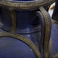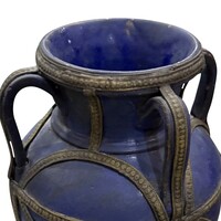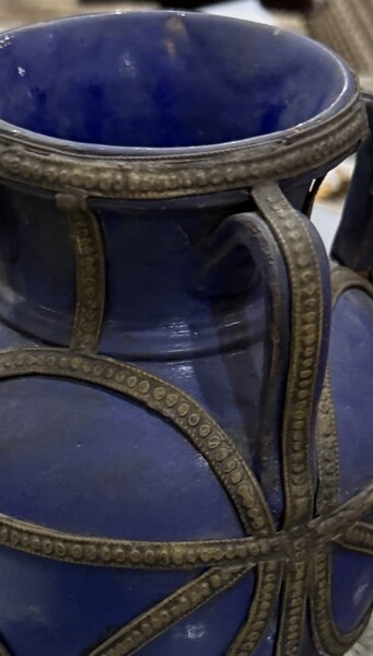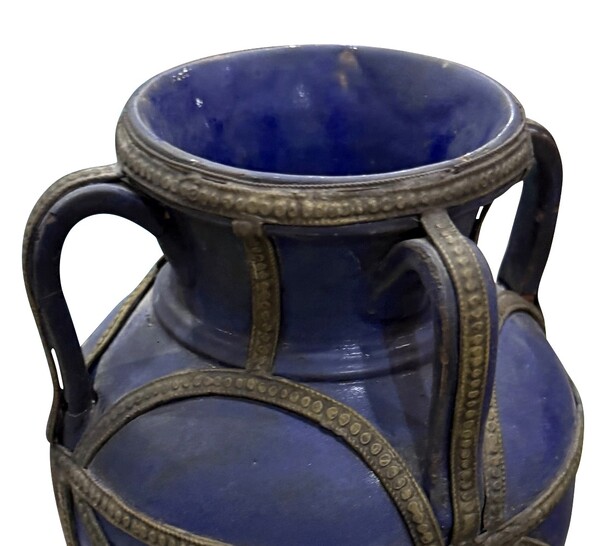 Home Vases 19thc Morocco Four Handle Pieced Cobalt Blue Vase 19thc Morocco Four Handle Pieced Cobalt Blue Vase 19thc Morocco four handle vase with cobalt blue pieces Decorated silver stips divide the pieces Part of a collection From the Atlas mountain region ARRIVING TBD Style Number: S7116 Condition: Excellent for age Origin: Morocco Date: 19thc List: $1800 Inquire About This Piece View PDF Tear Sheet