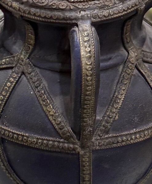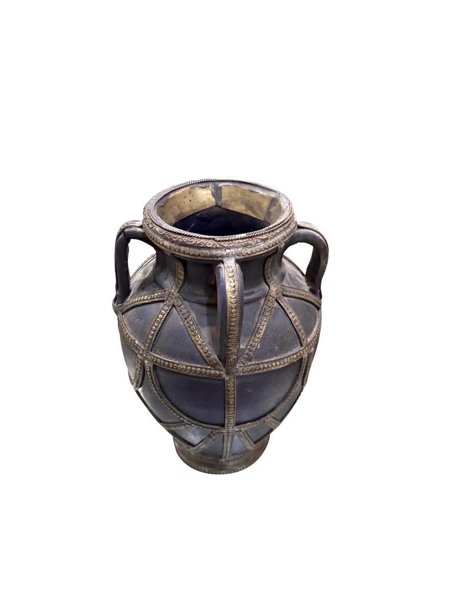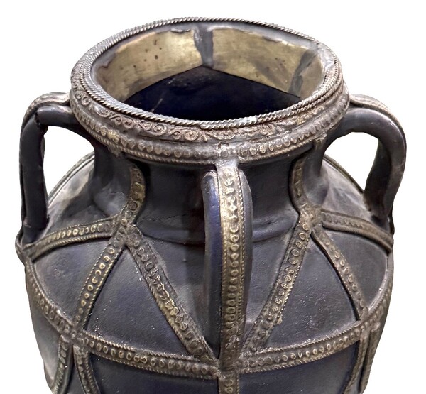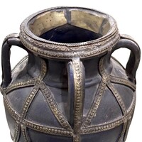 Home Vases 19thc Morocco Four Handle Pieced Cobalt Blue Vase 19thc Morocco Four Handle Pieced Cobalt Blue Vase 19thc Morocco four handle vase with cobalt blue n pieces Decorated silver stips divide the pieces Part of a collection From the Atlas mountain region ARRIVING TBD Style Number: S7115 Condition: Excellent for age Origin: Morocco Date: 19thc List: $1800 Inquire About This Piece View PDF Tear Sheet