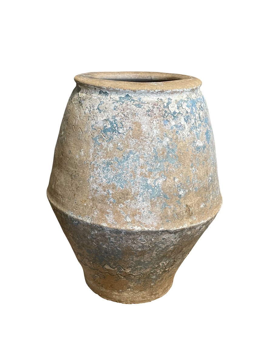 Home Vases 19thc Spanish Terra Cotta Olive Pot 19thc Spanish Terra Cotta Olive Pot 19thc Spanish terra cotta olive pot Unearthed from a very large family run olive oil producing business in southern spain Beautiful and natural aged patina Shades of pale blue One of many pieces from a large and unique collection Style Number: S5969 Condition: Excellent for age Origin: Spain Date: 19thc Height: 21" Diameter: 14" List: $2950 Inquire About This Piece View PDF Tear Sheet
