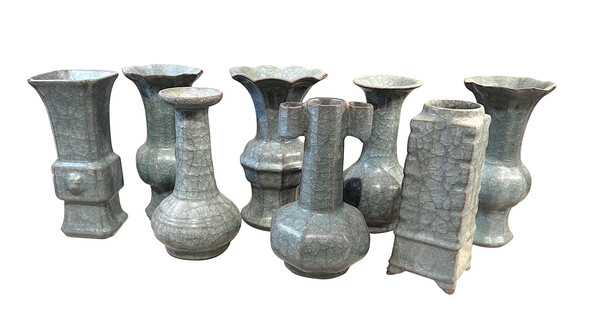 Home Vases Contemporary Chinese Deep Turqouise Crackle Vase Contemporary Chinese Deep Turqouise Crackle Vase Contemporary Chinese deep turquoise vase Non contrasting crackle glaze One of many from a large collection Fluted neck with wide mouth spout opening Style Number: S6931 Condition: Excellent Origin: China Date: 21st Century Height: 9" Diameter: 5" List: $595 Inquire About This Piece View PDF Tear Sheet
