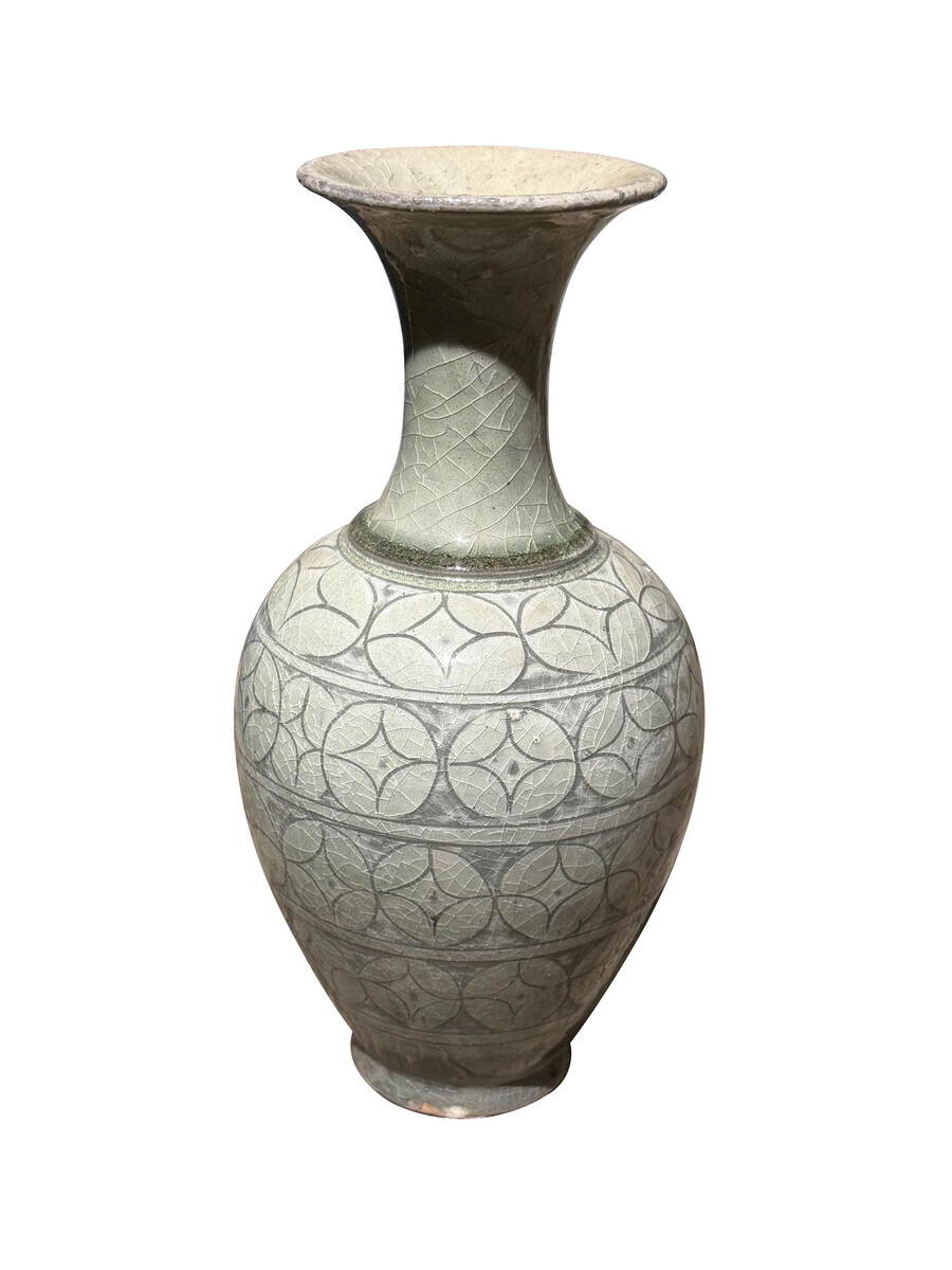 Home Vases Contemporary Chinese Geometric Patterned Grey / Sage Vase Contemporary Chinese Geometric Patterned Grey / Sage Vase Contemporary Chinese geometric patterned grey / sage colored vase Wide mouth with short funnel shape neck Horizontal bands of circular decorative pattern Collection of five with different shapes available ARRIVING NOVEMBER Style Number: S7103Y Condition: Excellent Origin: China Date: 21st Century List: $795 Inquire About This Piece View PDF Tear Sheet