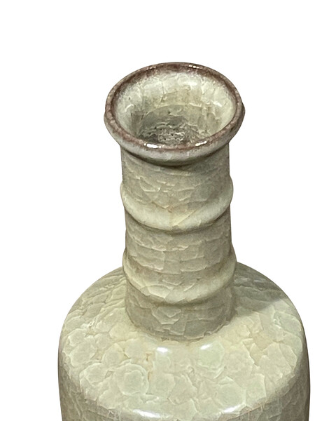 Home Vases Contemporary Chinese Khaki Vase with Crackle Glaze Contemporary Chinese Khaki Vase with Crackle Glaze Contemporary Chinese khaki color vase with crackle glaze finish Part of a large collection with various shapes and sizes Funnel neck with horizontal rib design Bottle shaped base Style Number: S6937 Condition: Excellent Origin: China Date: 21st Century Height: 10" Diameter: 6" List: $595 Inquire About This Piece View PDF Tear Sheet