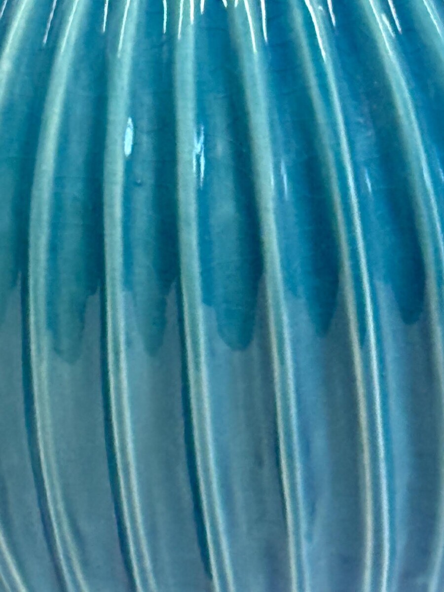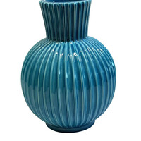 Home Vases Mid Century French Vertical Rib Vase Mid Century French Vertical Rib Vase Mid Century French textured small funnel neck vase Pumpkin shape Classic Rimini blue color Part of a large collection Style Number: S7064 Condition: Excellent for age Origin: France Date: Mid Century Height: 12" Diameter: 8" List: $695 Inquire About This Piece View PDF Tear Sheet