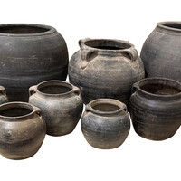 Large collection of Chinese weathered charcoal gray color vases