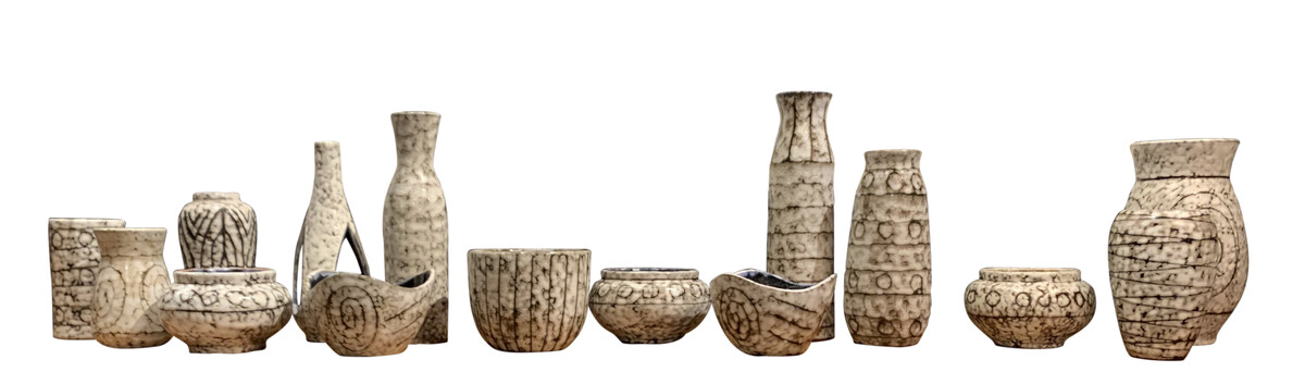 Home Vases 1940's HUNGARIAN COLLECTION CREAM & BROWN VASES 1940's HUNGARIAN COLLECTION CREAM & BROWN VASES 1940's Hungarian large collection of cream ground with brown decorative accents ceramic vases Size range 3.5" to 7" diameter 4" to 13" tall Condition: Excellent for age Inquire About This Piece View PDF Tear Sheet