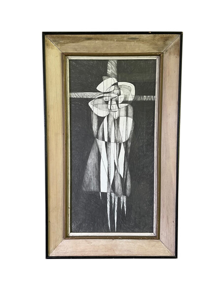 Home Artwork Contemporary American Artist David Dew Bruner Charcoal Drawing Contemporary American Artist David Dew Bruner Charcoal Drawing Original charcoal drawing by American artist David Dew Bruner This is one of many pieces from a large body of works Vintage cream with black trim frame Signed by the artist Style Number: P1597 Condition: Excellent Origin: USA Date: 21st century Height: 35" Width: 20.5" Depth: 1" List: $3600 Inquire About This Piece View PDF Tear Sheet