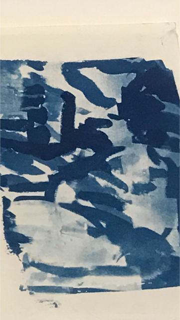 Contemporary American artist Sandra Constantine recreates the effect of an old architects blue print using the print type Cyanotype developed by an English scientist, John Frederick William Herschel in 1842.