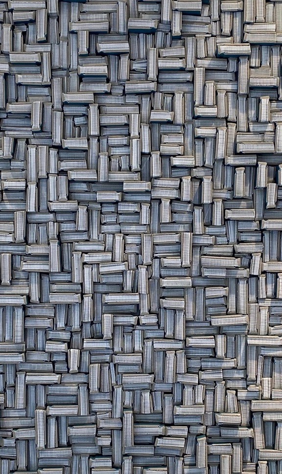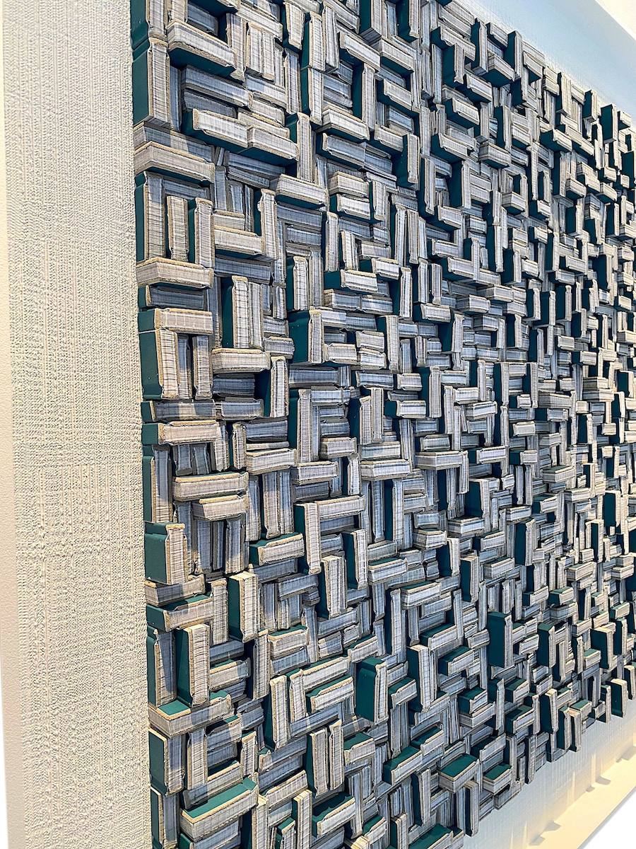 Home Artwork Contemporary Belgian Artist Guy Leclef Contemporary Belgian Artist Guy Leclef Contemporary artist Guy Leclef from his collection of Paper Works Cut pieces of small vintage paper bound books with blue covers Cut and placed in different sizes and direction to create a unique and dramatic wall sculpture Style Number: P1484 Condition: Excellent Origin: Belgium Date: 21st Century Height: 47" Width: 47" List: $29950 Inquire About This Piece View PDF Tear Sheet
