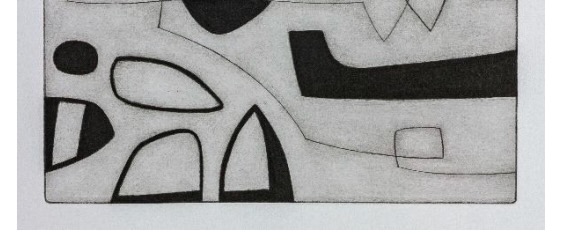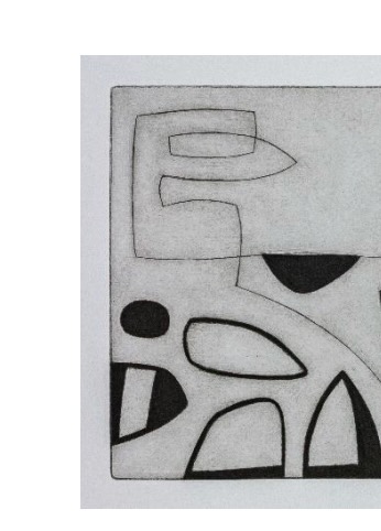 Contemporary abstract black and white etching by English artist Oliver Gaiger