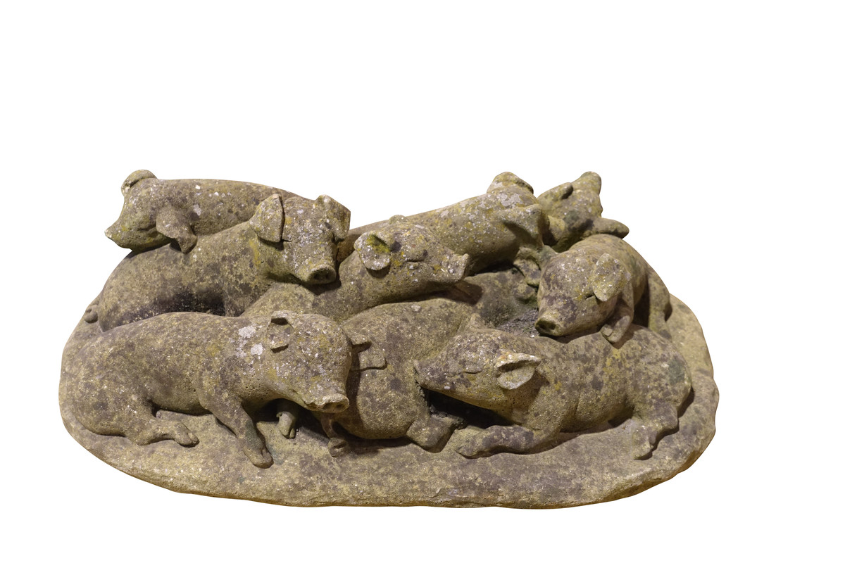 Home Statues 1940's English Stone Piglets 1940's English Stone Piglets Whimsical composition stone sculpture of group of piglets Natural patina with moss and lichen embedded in stone Style Number: G2474 Condition: Excellent for age Origin: England Date: 1940's Height: 11" Width: 27" Depth: 17" List: $2400 Inquire About This Piece View PDF Tear Sheet