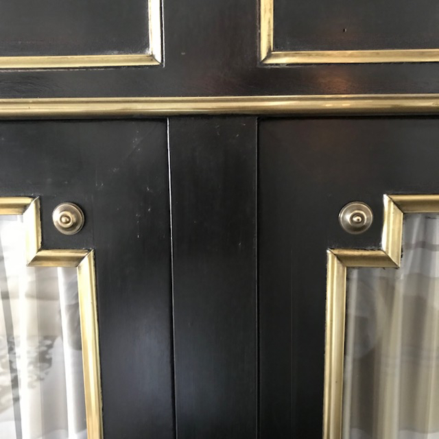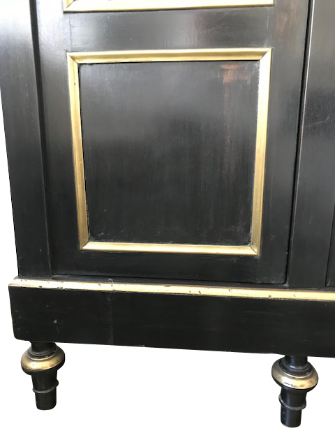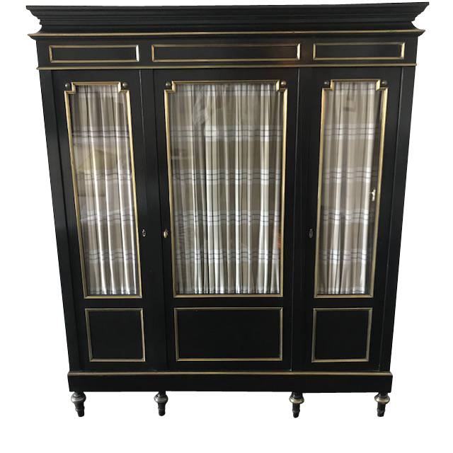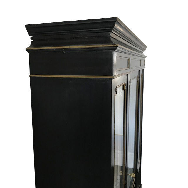 Home Cabinets 19thc French Napoleon III Cabinet 19thc French Napoleon III Cabinet 19thc French Napoleon III ebonized black cabinet with decorative brass details Original glass front panel doors Three interior wooden shelves Two available Style Number: F1517 Condition: Excellent for age Origin: France Date: 19thc Height: 70" Width: 58.5" Depth: 16.5" List: $12,500 ea Inquire About This Piece View PDF Tear Sheet