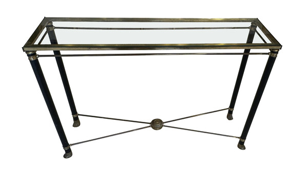Home Consoles Mid Century French Maison Jansen Console Table Mid Century French Maison Jansen Console Table Mid Century French Maison Jansen console table New glass top Signature bronze paws and bronze accents Style Number: F2937 Condition: Excellent for age Origin: France Date: Mid Century Height: 31.5" Width: 45" Depth: 12" List: $7450 Inquire About This Piece View PDF Tear Sheet