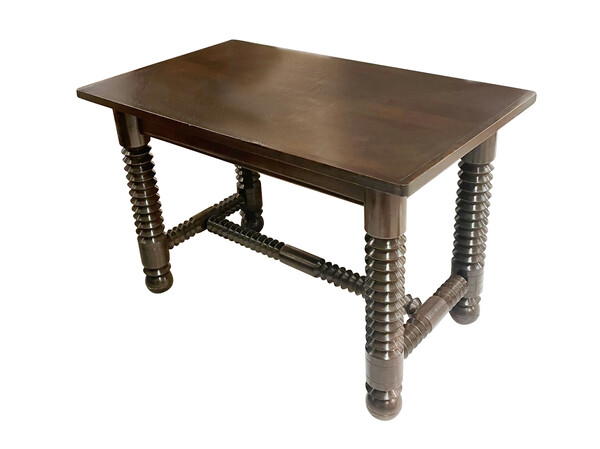 Home Consoles 1940's French Charles Dudouyt Console 1940's French Charles Dudouyt Console 1940's French Charles Dudouyt console Can also be used as a desk Signature spool leg and stretcher design Ball shaped legs Recently restored and refinished Style Number: F3055 Condition: Excellent for age Origin: France Date: 1940's Height: 29.5" Width: 45" Depth: 27" List: $9850 Inquire About This Piece View PDF Tear Sheet