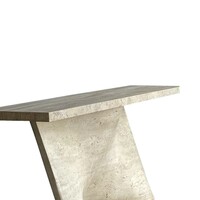 Home Consoles 1970's Spanish Exceptional Sculptural Travertine Console 1970's Spanish Exceptional Sculptural Travertine Console 1970s Spanish travertine console of dramatic sculptural form. The console has unique, deep, soft curves. The top and base are made from unfilled Italian travertine with a honed finish. Style Number: F2943 Condition: Excellent for age Origin: Italy Date: 1970's Height: 32" Width: 71" Depth: 18" List: $18,500 Inquire About This Piece View PDF Tear Sheet