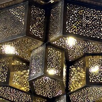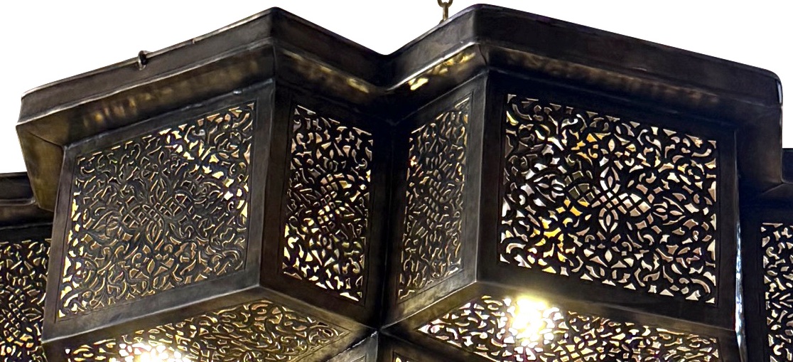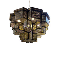 Home Chandeliers Contemporary Moroccan Three Tiered Perforated Brass Cubes Chandelier Contemporary Moroccan Three Tiered Perforated Brass Cubes Chandelier Contemporary Moroccan three tiered chandelier Pierced brass cubes stacked forming star design Decorative pattern appears on ceiling when light Part of a collection ARRIVING TBD Style Number: L1215 Condition: Excellent Diameter: 31.5" Inquire About This Piece View PDF Tear Sheet