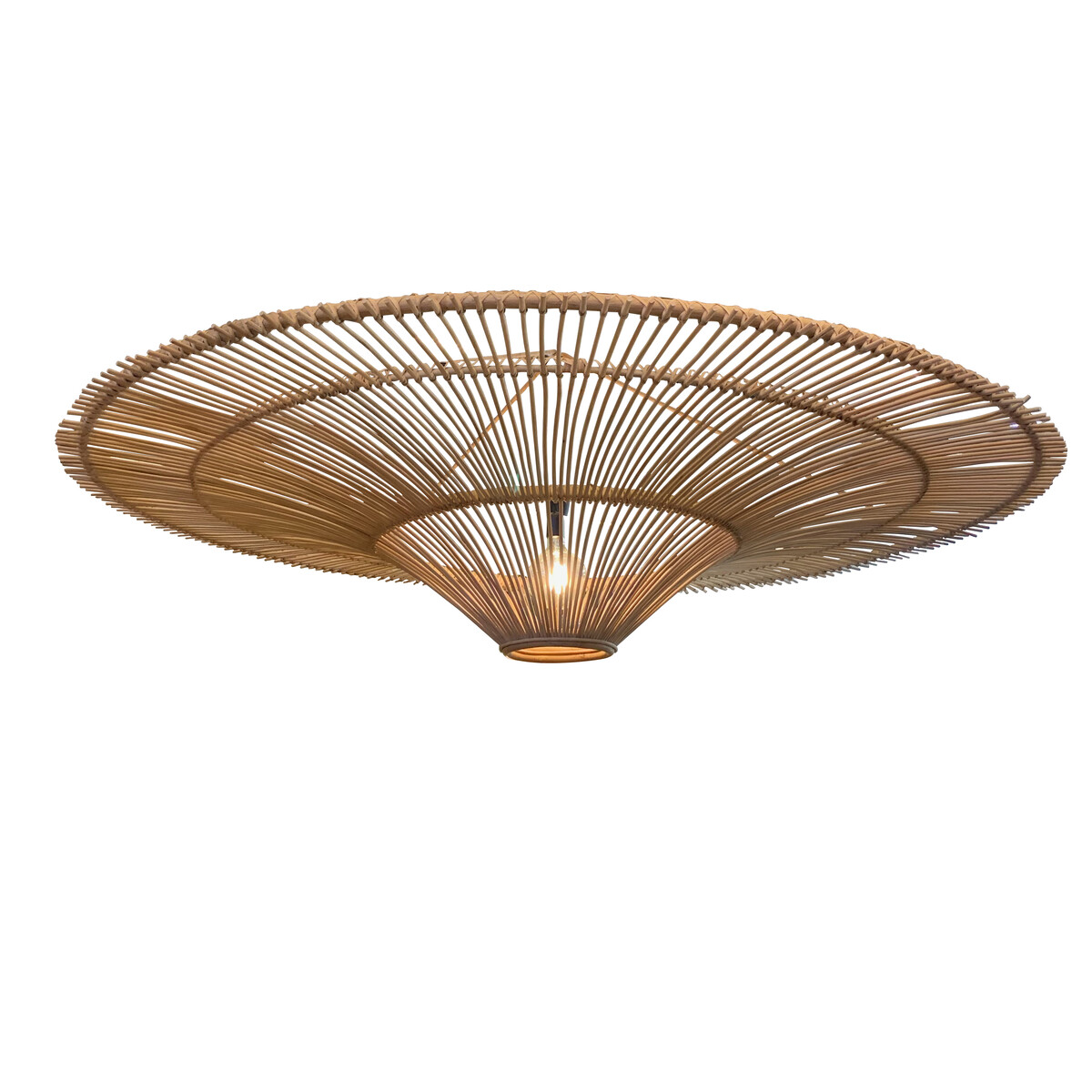 Home Chandeliers Contemporary Indonesian Medium Bamboo Chandelier Contemporary Indonesian Medium Bamboo Chandelier Contemporary Indonesian large round umbrella shaped chandelier made of bamboo Single bulb 60 watt to 100 watt maximum bulb Chain and cord are 8' and can be adjusted by adding or subtracting length. 51" Also available in 71" diameter L976 Style Number: L976A Condition: Excellent Origin: Indonesia Date: 21st Century Height: 24" Diameter: 51" List: $5500 Inquire About This Piece View PDF Tear Sheet