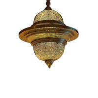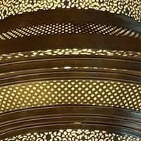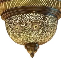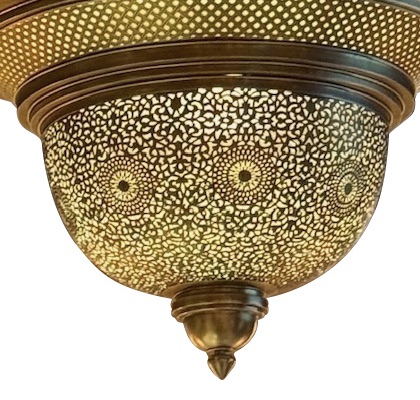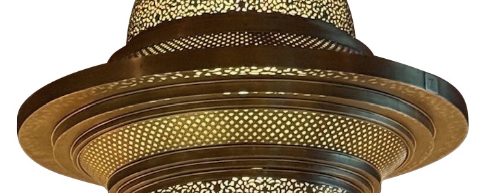 Home Chandeliers Contemporary Moroccan Dome Shape Pierced Brass Chandelier Contemporary Moroccan Dome Shape Pierced Brass Chandelier Contemporary Moroccan dome shape pierced brass chandelier Center horizontal band Layers of varying perforated brass designs When light decorative pattern appears on ceiling Part of a large collection ARRIVING TBD Style Number: l1221 Condition: Excellent Origin: Morocco Date: 21st Century Diameter: 31.5" List: $8950 Inquire About This Piece View PDF Tear Sheet
