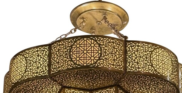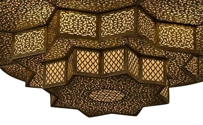 Home Chandeliers Contemporary Moroccan Three Tiered Star Shaped Pierced Brass Chandelier Contemporary Moroccan Three Tiered Star Shaped Pierced Brass Chandelier Contemporary Moroccan three tiered star shaped chandelier Pierced brass When light decorative design appears on ceiling Part of a collection ARRIVING TBD Style Number: L1218 Condition: Excellent Origin: Morocco Date: 21st Century Height: 20" Diameter: 50" List: $8950 Inquire About This Piece View PDF Tear Sheet