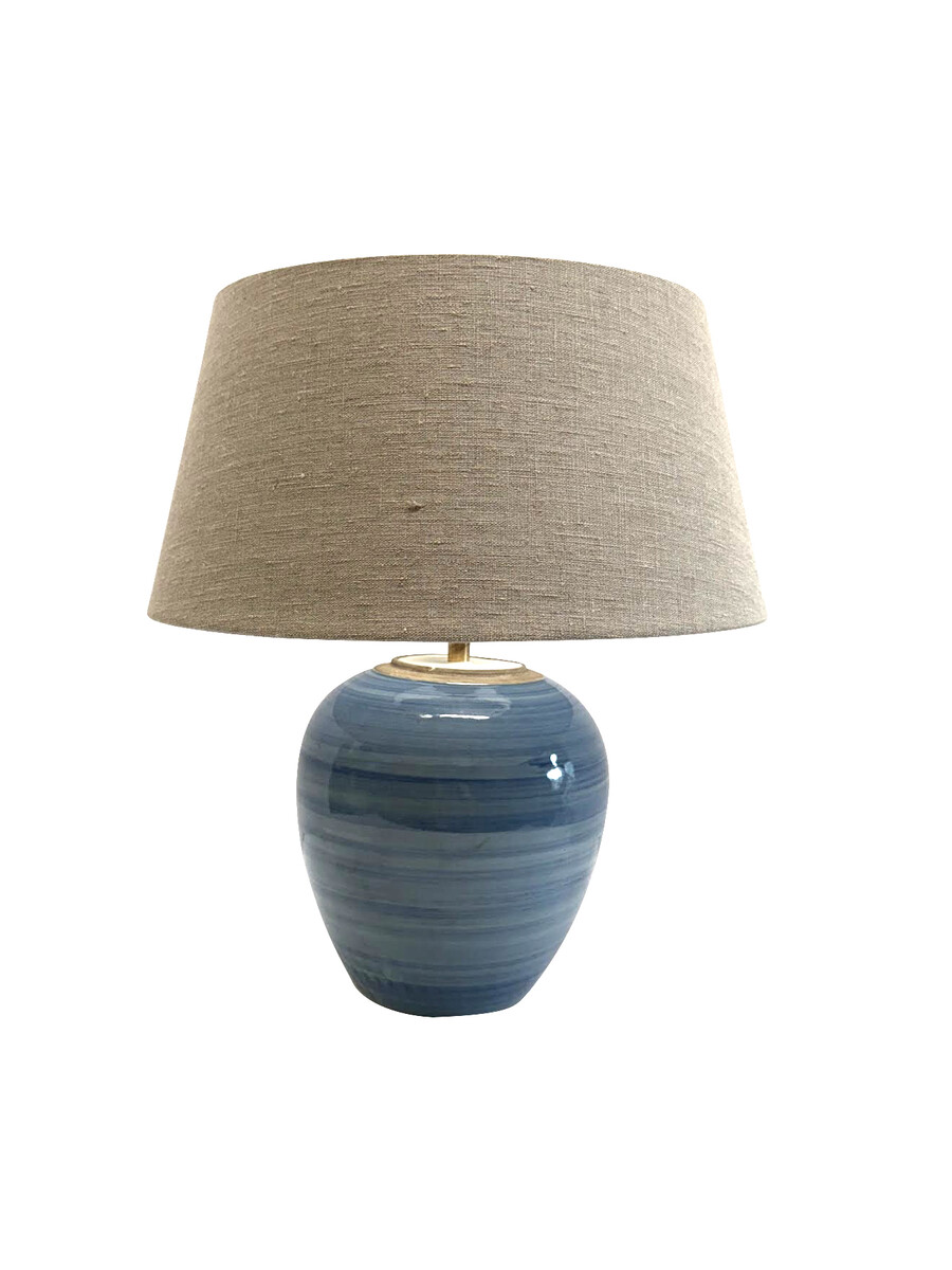 Home Lamps Contemporary Chinese Single Striated Blue Lamp Contemporary Chinese Single Striated Blue Lamp Contemporary Chinese single round shape lamp with striated horizontal blue glaze Belgian linen shade included Base measure 10" diameter x. 10" tall Shade diameter 17" Overall height 20" Style Number: L1181 Condition: Excellent Origin: China Date: 21st Century List: $1975 Inquire About This Piece View PDF Tear Sheet