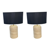 Home Lamps 1970's Italian Pair Travertine Lamps 1970's Italian Pair Travertine Lamps 1970's Italian pair of travertine lamps Honed and unfilled finish Round column shape design Black silk shades are included 18" diameter Base measures 8" diameter x 12" tall Overall height of lamps are 24" Style Number: L1070 Condition: Excellent for age Origin: Italy Date: 1970's List: $5950 / pair Inquire About This Piece View PDF Tear Sheet