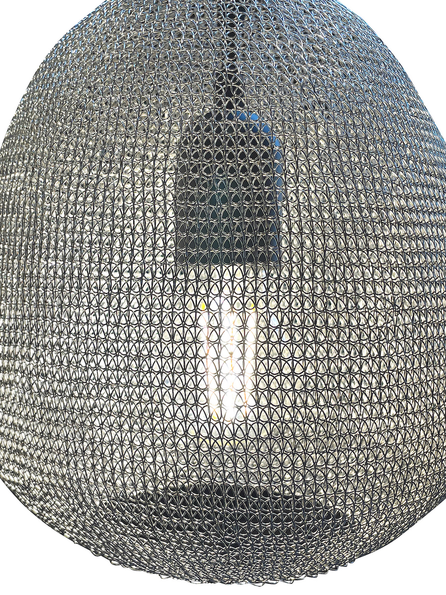 Home Pendants Contemporary Botswana Pair Knitted Stainless Steel Pendants Contemporary Botswana Pair Knitted Stainless Steel Pendants Contemporary Botswana pair of knitted stainless steel mesh pendants Single dropped socket holds bulb for lighting 60 watt bulb Black caps included Pendant fixture alone measures 11.5" diameter and 15" tall Cord length 72" Style Number: L1088 Condition: Excellent Origin: Botswana Date: 21st Century List: $1950 / pair Inquire About This Piece View PDF Tear Sheet
