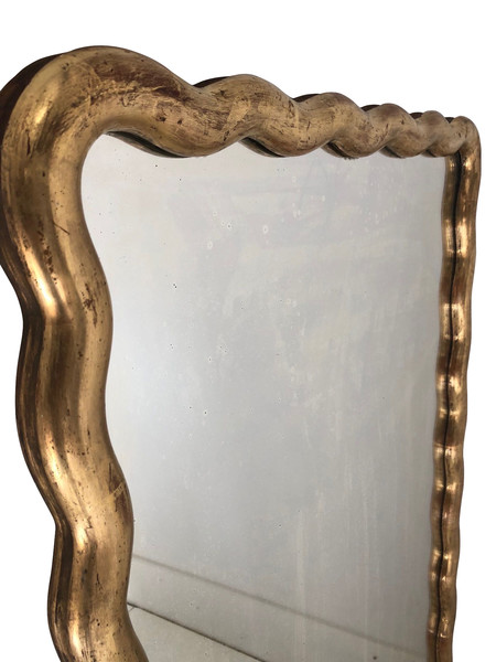 Home Mirrors 19thc French Gold Gilt Serpentine Frame Mirror 19thc French Gold Gilt Serpentine Frame Mirror Newly restored classic gold gilt leaf serpentine shaped 19thc French mirror Style Number: P1170 Condition: Excellent for age Origin: France Date: 19thc Height: 51" Width: 30" Depth: 1.5" List: $5950 Inquire About This Piece View PDF Tear Sheet