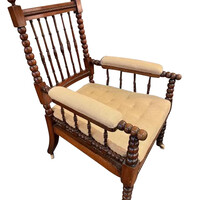 Home Chairs 19thc English Single Bobbin Chair 19thc English Single Bobbin Chair 19thc English single bobbin chair Classic bobbin details and spindle seat back Cane seat Original four brass casters Recently reupholstered seat arm rests Tufted detailing on the seat Style Number: F3168 Condition: Excellent for age Origin: England Date: 19thc Height: 39" Width: 26" Depth: 25.5" Seat Height: 18" List: $6950 Inquire About This Piece View PDF Tear Sheet