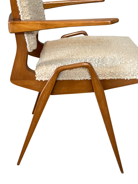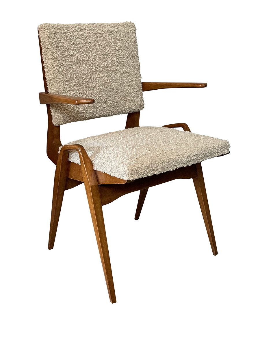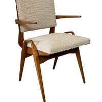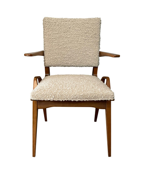 Home Chairs 1950's French Maurice Pre Chair 1950's French Maurice Pre Chair 1950's French Maurice Pre chair Compass shaped legs Floating arms Beachwood Newly reupholstered in boucle Style Number: F3116 Condition: Excellent for age Origin: France Date: 1950's Height: 33" Width: 22.5" Depth: 20.5" Seat Height: 18" List: $4250 Inquire About This Piece View PDF Tear Sheet