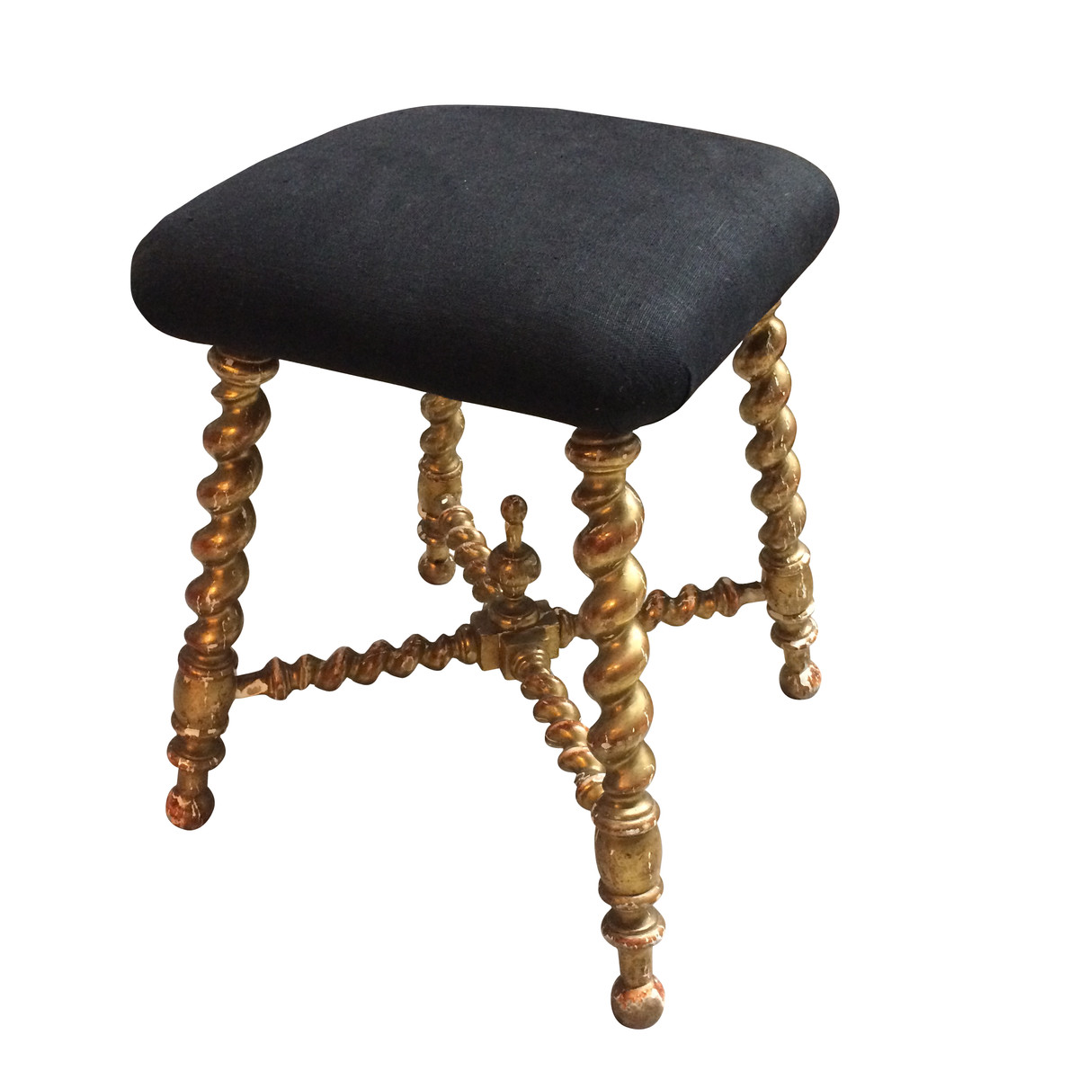 Home Benches & Stools 19th Century French Napoleon III Upholstered Foot Stool 19th Century French Napoleon III Upholstered Foot Stool 19th century French Napoleon III gold gild spool leg foot stool / newly upholstered black seat cushion. Style Number: F1743 Condition: Excellent Origin: France Date: 19th Century Height: 20" Width: 14" Depth: 14" Seat Height: 20" List: $1,950 Inquire About This Piece View PDF Tear Sheet