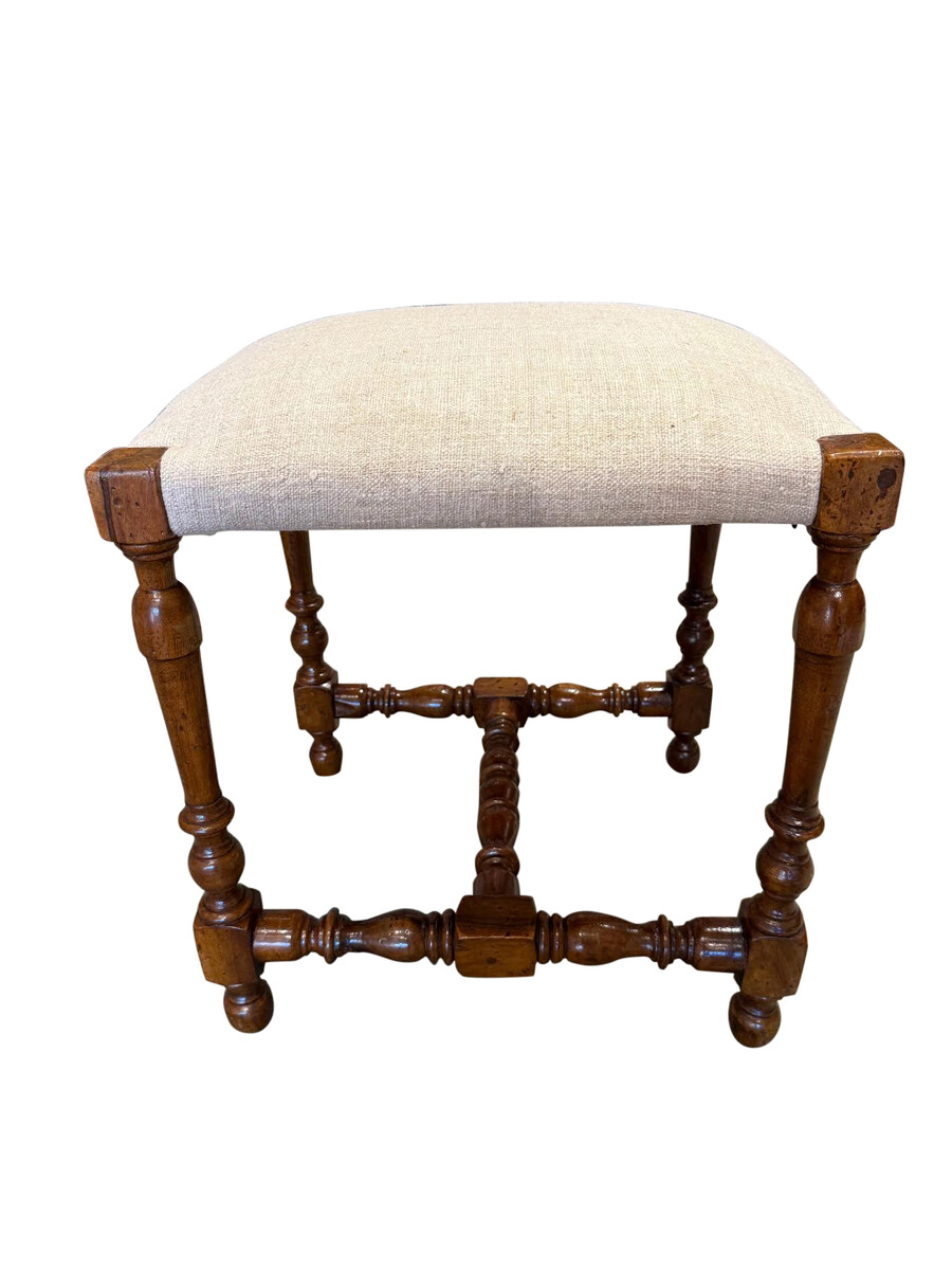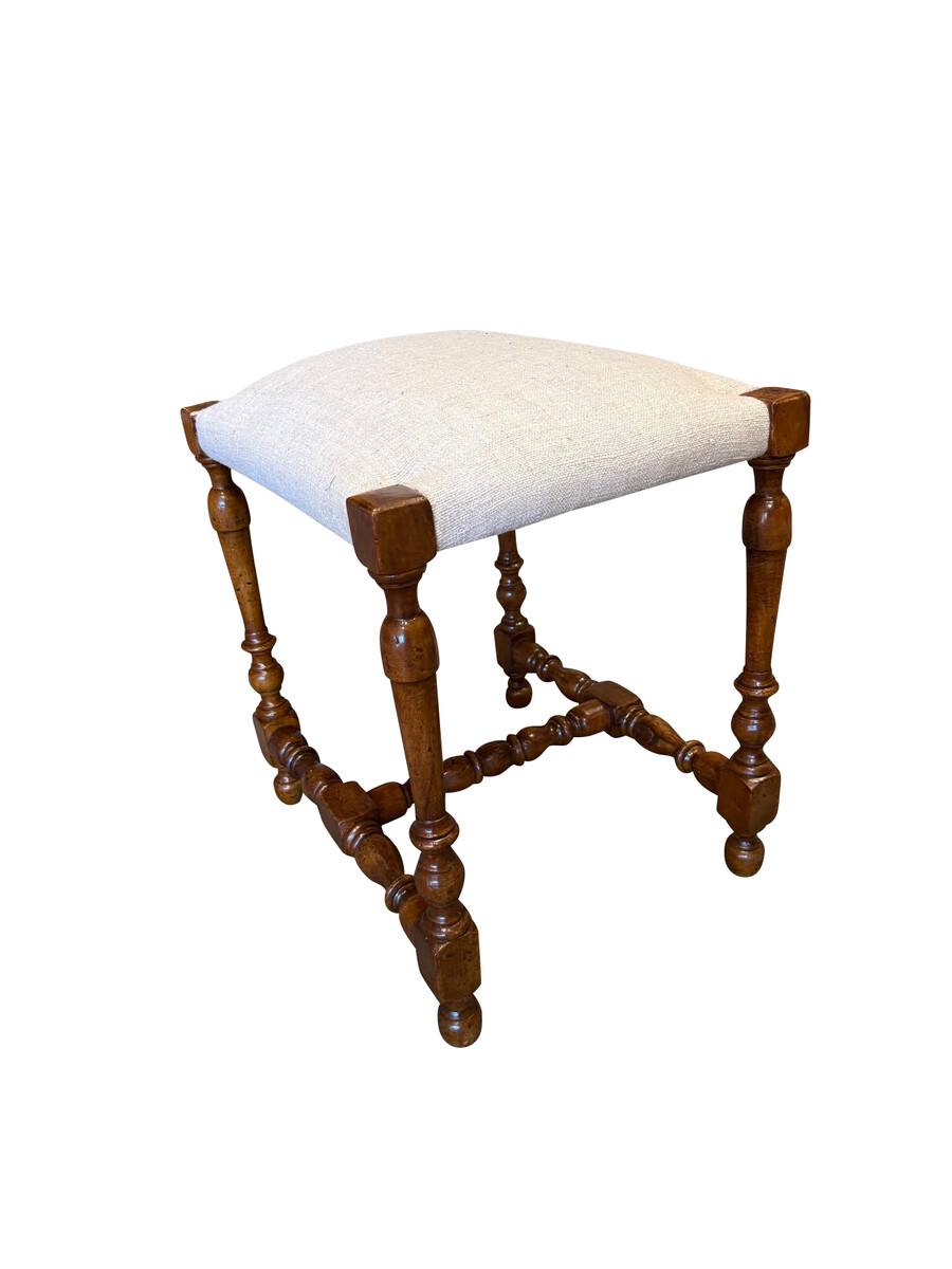 Home Benches & Stools 19thc Italian Pair Turned Leg Stools with Cornered Wood Detail 19thc Italian Pair Turned Leg Stools with Cornered Wood Detail 19thc Italian Pair turned legs with cornered wood detail Recently refinished Newly reupholstered in vintage Belgian linen Style Number: F3191 Condition: Excellent for age Origin: Italy Date: 19thc Width: 17" Depth: 14.5" Seat Height: 20" List: $4950 / pair Inquire About This Piece View PDF Tear Sheet