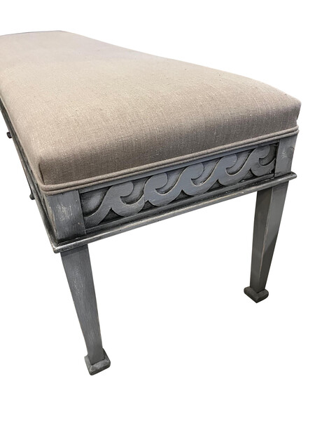 Home Benches & Stools Contemporary Gustavian Style Bench Contemporary Gustavian Style Bench In the style of Swedish Gustavian, painted grey bench with newly reupholstered linen fabric Also available in white (F2376 ) ARRIVING TBD Style Number: F2376A Origin: England Date: 21st Century Height: 20" Width: 63" Depth: 18.5" Seat Height: 20" List: $3950 Inquire About This Piece View PDF Tear Sheet