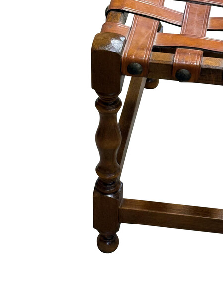Home Benches & Stools 1940's Spanish Pair Strap Leather Stools 1940's Spanish Pair Strap Leather Stools 1940's Spanish pair of strapped leather stools Decorative brass tacks Turned legs Beautiful patina on the leather Style Number: F3185 Condition: Excellent for age Origin: Spain Date: 1940's Width: 20" Depth: 13.5" Seat Height: 17" List: $5950 / pair Inquire About This Piece View PDF Tear Sheet