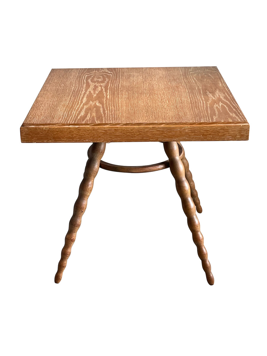Home End / Side 1940's French Victor Courtray Side Table 1940's French Victor Courtray Side Table 1940's French Victor Courtray square side table Also functions as a dining table or card table Spool leg design with decorative ring Cerused oak Coordinating set of four chairs. ( two with arms and two without ) available (F3143) Style Number: F3143Z Condition: Excellent for age Origin: France Date: 1940's Height: 29.5" Width: 31" Depth: 31" List: $5950 Inquire About This Piece View PDF Tear Sheet